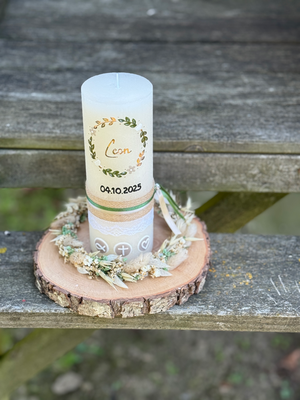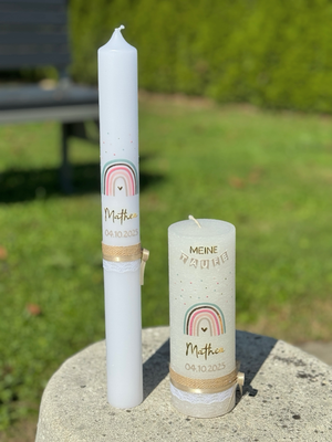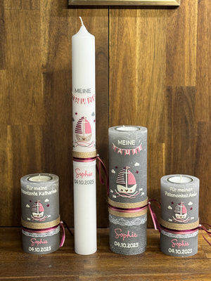 3-teiliges Taufkerzenset ( Kerze 20x7cm + Kerze 40x400mm+ Taufbrief) €220,00 -